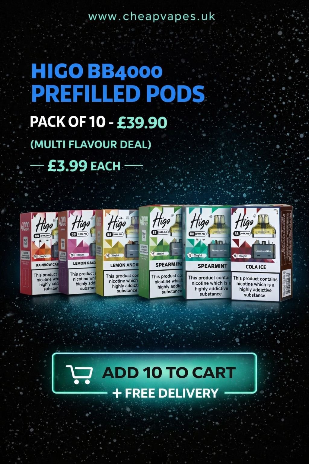 Higo BB4000 Prefilled Pods – Pack of 10 | Free UK Delivery