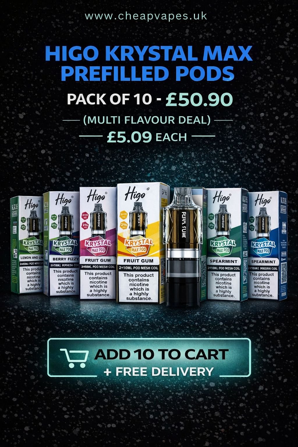 Higo Krystal Max 7500 Prefilled Pods – Pack of 10 | Free UK Delivery