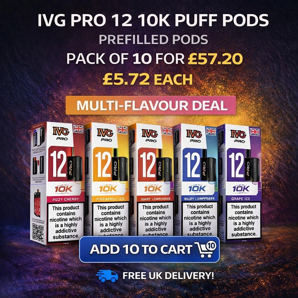 IVG Pro 12 10K Puff Prefilled Pods – Pack of 10 | Free UK Delivery