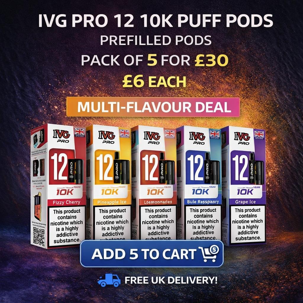 IVG Pro 12 10K Puff Prefilled Pods – Pack of 5 | Free UK Delivery